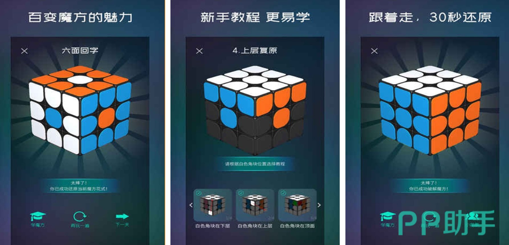 《魔方学院》是具有很强的社交氛围和教学趣味的综合性魔方社区手游。它使用了非常讨喜的卡通3D建模,把枯燥的魔方学习过程变成了一场奇幻的学院冒险。玩家们在学院里可以拜师学艺,与全世界的同龄人进行实时在线对战。游戏最出彩的就是智能辅助系统,当玩家陷入思维死角的时候,虚拟小助手就会用半透明的箭头引导下一步的拧转方向。