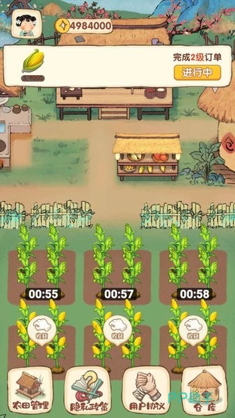 主打轻度种田养成,开局即获初始耕地,通过翻土、播种、灌溉、收割完成作物生命周期。支持离线收益机制,作物在设定周期内自动成熟,大幅提升时间利用率。随着进度推进,可解锁梯田、果园、桑园等新地块类型。游戏内置真实农事变量系统:虫害爆发、连续阴雨、干旱缺水等随机事件将影响收成,考验玩家对季节规律与防灾策略的掌握程度。