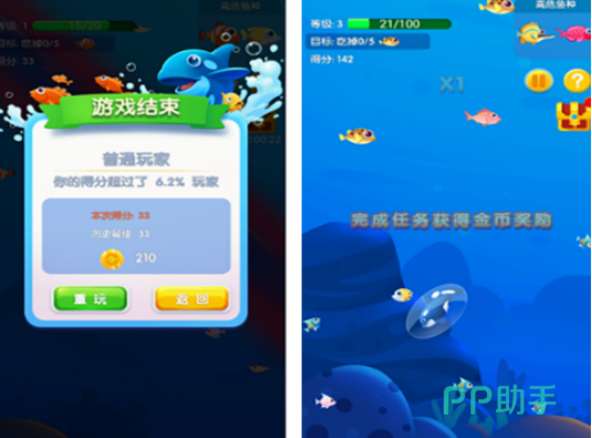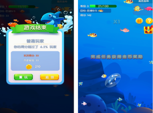 这款以简单的鱼吃鱼为主要玩法的手游,既能让大家进入非常美丽的海上环境,还能看到形形色色大小不同的鱼儿。虽然最初的时候自己只是一个非常小的,但是却能通过吃比自己体型小的鱼儿以后,不断的完成进化,最终成为大白鲨。在玩法上是很多年龄段的玩家都能轻松上手的,需要你有很好的反应能力,就可以完成进化。