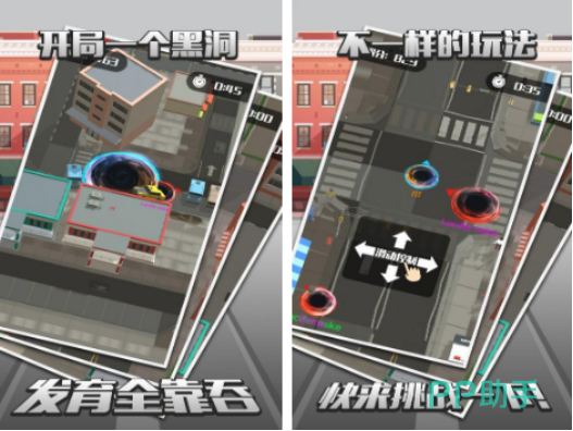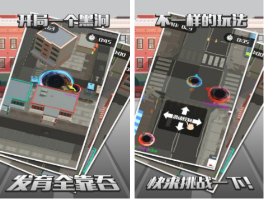 这款玩法比较简单的手游,将会让玩家置身于城市的环境,所有的一切都能够进行通视,具有简洁的画面以及有趣的玩法,再加入到漩涡的形式中,利用吞噬不断的变强大。比如在最初的时候只是吞噬比较小的物品,但是却能通过扩大漩涡的方式,让自己有机会吞掉整个大城市,甚至是所出现的人类,所有的一切都能够被吃掉。