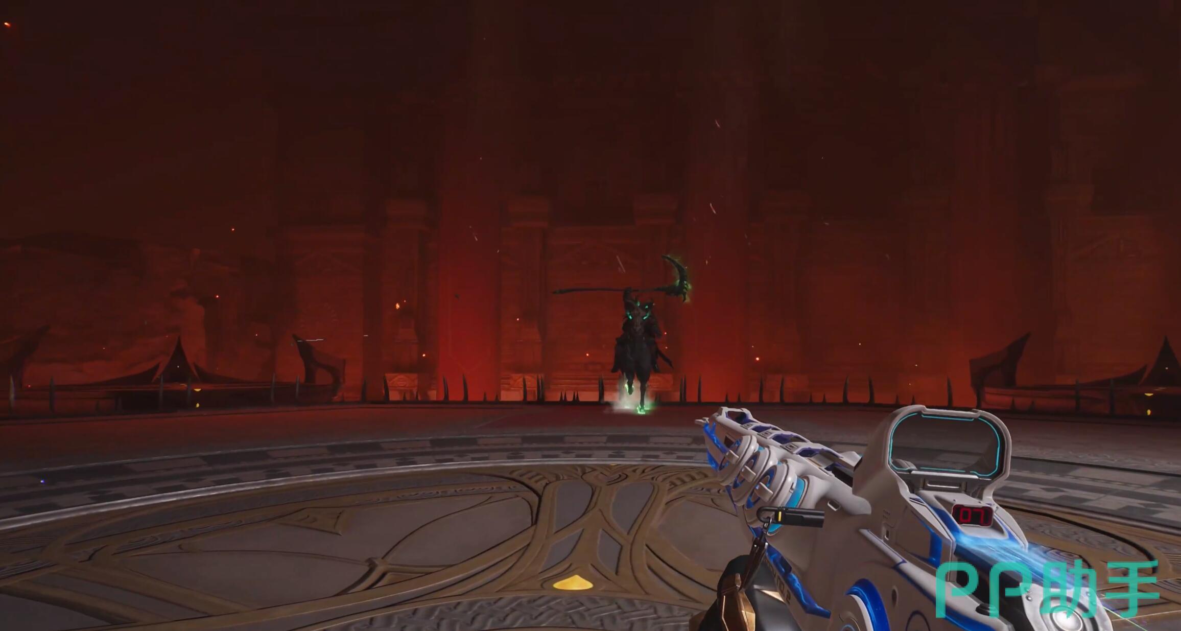 终局阶段,幽魂骑士退至场地边缘,背后浮现巨型虚影轮廓。该阶段需维持全屏范围输出,但躲避逻辑高度依赖实时反应:虚影抬刀瞬间必须停止攻击并观察镰刀挥击方向——若向左斩击,则迅速向右位移;若向右斩击,则立即向左闪避。此环节容错率低,对玩家瞬时判断与操作精度构成直接考验。