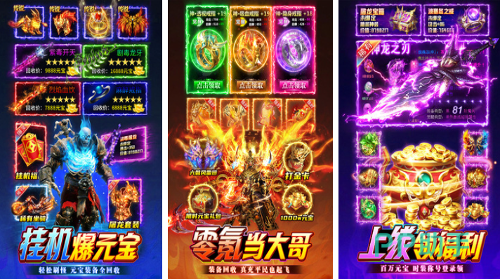 这是款可以完完全全挂机进行操作的传奇题材角色扮演手游,零氪金也可以在不同模式中获得各类道具,上线即可领取超多福利的设定无比良心,骷髅版的游戏内容区别传统的传奇手游,更有装备回收以及拍卖行系统可以自由参与,百万元宝红包定点发放人人都有机会成为游戏世界里的土豪。