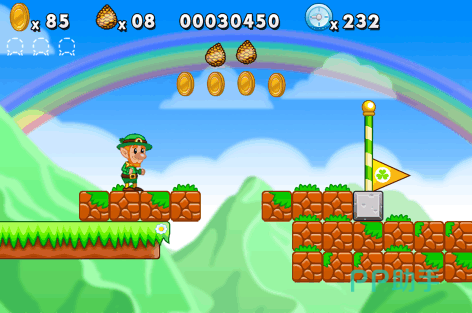 致敬经典横版动作游戏的原创跑酷作品。主角具备跳跃、攀爬、滑铲、投掷松果等多样化动作模组,关卡融合管道迷宫、水下浮力系统、空中浮岛等多元场景。金币收集、隐藏宝箱、主题BOSS战贯穿全流程,海底世界、天空之城等章节具备独立美术风格与机制设定,增强叙事代入感。