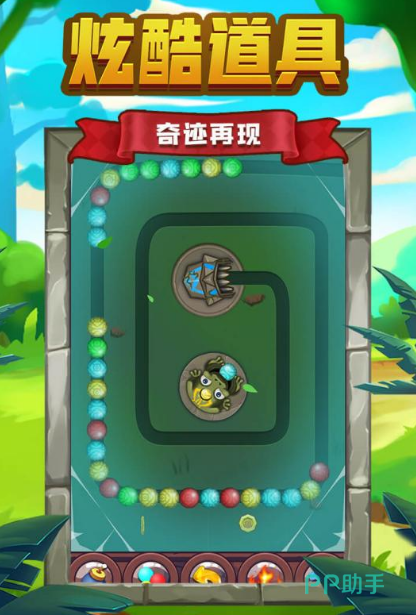 基于祖玛原始玩法深度打磨的消除类手游。球链沿固定轨道匀速行进,玩家需瞄准发射同色球,达成三连及以上即可消除。关卡中嵌入磁力吸附、镜面反射、时间冻结等辅助机制,并设置阶段性Boss关卡,要求玩家在限定步数内完成高难度消除组合,强化策略规划与临场反应能力。