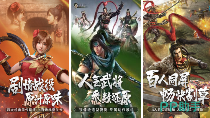 本作是款能够实现百人同屏酣畅割草的动作类神作,ACT割草战斗的特色概念跟三国无双玩法进行结合,高人气的武将们都会重新刻画造型,还可以解锁各类武器和战马参与各种战役,极为爽快的战斗手感也是不少动作手游粉丝最爱,最大的亮点就是每个武将与众不同的无双大招,可以做到快速清屏消灭屏幕上所有敌人。