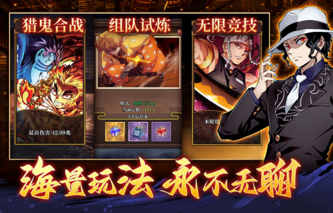 本作改编自人气动漫《鬼灭之刃》,高度还原原作人物设定与战斗风格。玩家可招募炭治郎、祢豆子等标志性角色,通过技能升阶、命格解锁、装备强化及连携技组合等方式提升战力。游戏采用动态战斗系统,支持多段连招与QTE触发,配合高帧率技能特效与剧情分支选项,允许玩家在关键节点改写原有故事走向。PVP玩法涵盖1v1竞技场、跨服联盟战及限时生存挑战等多种模式。