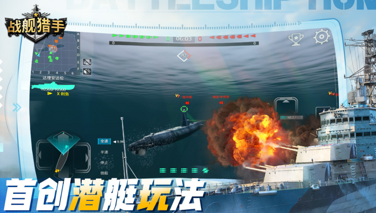 这是款首创了潜艇海战玩法的精品战争游戏,可利用第三视角驾驭海上战斗单位完成战术对决,潜水艇和战斗机等战争主题载具应有尽有,海上情况相当复杂而且气氛展现过于硬核,大量海战作战单位组合自由能轻松完成任务,超越传统的海战战斗机制也为游戏增色不少,切换视角操控战舰战斗的感觉更为硬核。