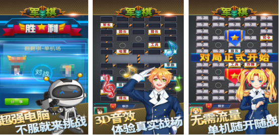 既支持人机对战模式,又支持闯关挑战等等,在主页面上将会看到多个不同的选项,大家可结合自己的实际情况正确挑选,也分为多个不同难度的等级,从菜鸟再到特级大师应有尽有,就算是新手玩家也无需担心,其中会有新手引导教程。这些战场上的将领都会以棋子的形式所展现,大家要具体了解这些棋子之间的相互克制关系,通过正确走棋子的方式将对方将死。