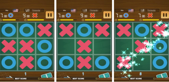 具体的要求规则和我们现实生活中玩的井字棋特别相似,其中还有多个不同难度的等级,从最简单再到高难度应有尽有,大家可根据自己的实际情况随机挑选,比如在多人游戏模式当中时,也可智能匹配到自己实力相当的对手,可和世界各地的好友相互较量。通过水平或者是垂直等不同的角度填充空间的方式,将自己的三个图案连接在一起,即可获胜。