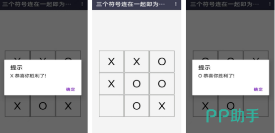 支持双人共同畅玩,简约的画面就连游戏的要求都特别简单,每一位玩家都可以选择不同的图案,分别是x和o,核心的要求就是通过正确规划的方式,不论是从横竖或者是斜着,只要将自己的三个符号连接在一起,就算轻松获胜,只要自己的图案连接在一起之后,屏幕上就会给出提示。要么是x胜利了,要么就是o胜利了。