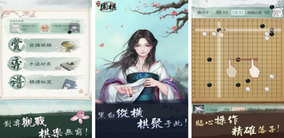 简约的水墨画风格所展现,也采用黑白两种不同颜色的棋子所设计。大家可以选择自己喜欢的棋子,通过点击屏幕的方式就能成功放置,只要想方设法让自己的棋子,将对方的棋子团团围住之后就算轻松获胜,还有世界大赛实时直播的模式,大家可和从中学到更多的围棋技术。