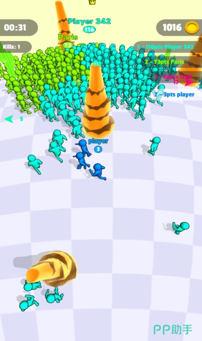 休闲竞技的体验玩法还是需要我们凭借操作来获得胜利的,一开始我们的玩家只控制一个小人,随着你们的吞噬来获取到更多的人数,逐渐的扩张自身的实力,《拥挤世界》这款手游当中的实时排行的信息也可以随时查看,我们可以清楚的了解到自己所在的一个阶段,尝试获取到最终的胜利哦。