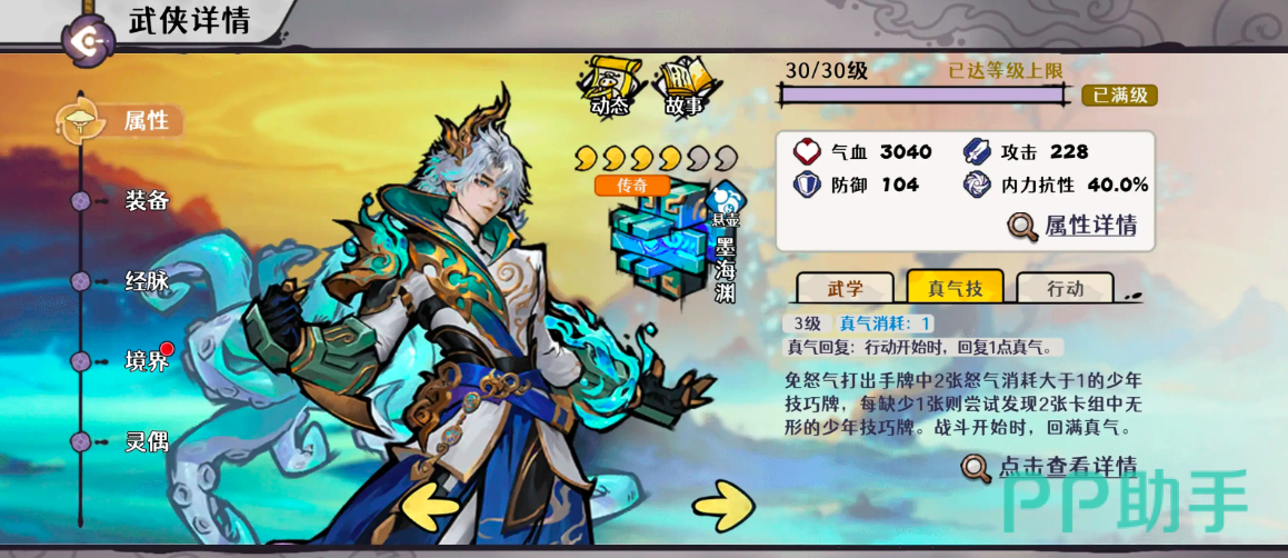 第二部分就是关于他的悬浮技能,这个角色拥有悬浮的最强保人方式,可以直接复活队友,也相当于整个团队的奶妈,每复活两次己方队友。可实现群体回满血量,没有技巧卡时,玩家可以拿角色。自身的技巧卡”幻方八渊决“,在启动该技能卡时,发现友方武侠的无形武学各1张。并使其怒气消耗-1,手牌中每有1张中立牌,怒气消耗-1,最多可叠加3层。回合开始此牌回到手牌。