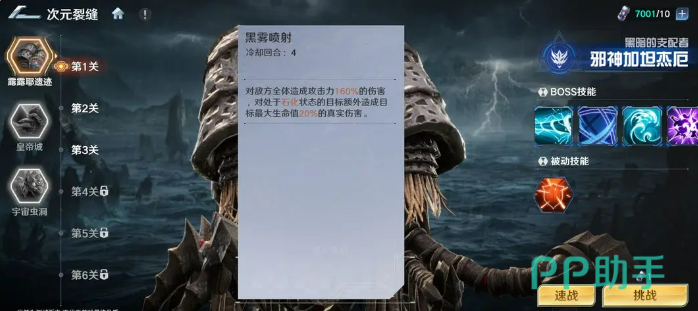 战斗准备阶段,界面右侧设有“BOSS情报面板”,点击即可查看目标BOSS的技能详情、属性弱点、行动节奏等核心数据。此功能是制定战术的前提——例如面对高防御型BOSS需配置破甲角色,应对高速闪避型则应优先部署控制或先手压制单位。