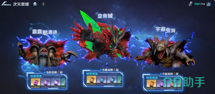 参与次元裂缝需达成基础等级条件:角色等级达到25级即可解锁。入口位于游戏主界面的“宇宙港”功能按钮内,点击进入后即可看到三大主题副本——露露耶遗迹、皇帝城、宇宙虫洞。三者不仅拥有独立世界观设定,更对应不同属性与机制的专属BOSS,形成差异化挑战路径。