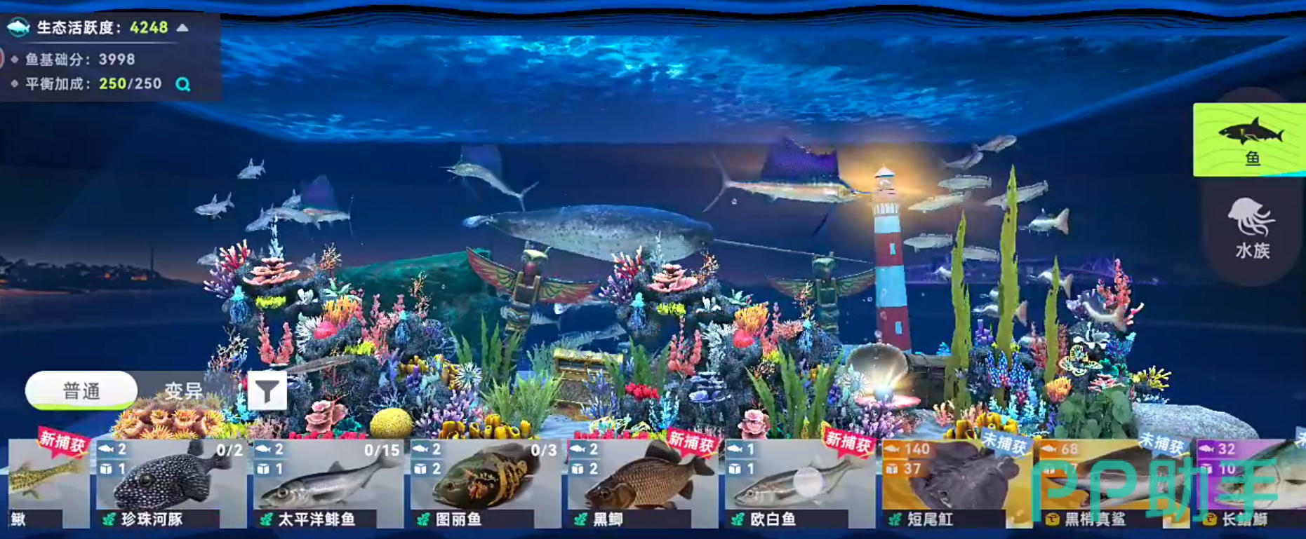 游戏提供多样化垂钓模式,包括岸钓、船钓、夜钓及深海拖钓等,不同场景需匹配对应技巧——例如控竿节奏、收线时机与脱钩应对策略。当遭遇大型目标鱼时,系统将触发“水下追捕”机制:玩家可潜入水下,以实时操作完成近身围捕。成功捕获后,鱼类自动归入生态鱼缸系统。鱼缸支持按物种分类(如深海系、热带系、极地系)独立布置,完成主题化装饰后可升级为水族馆经营模块,持续产出资源收益。