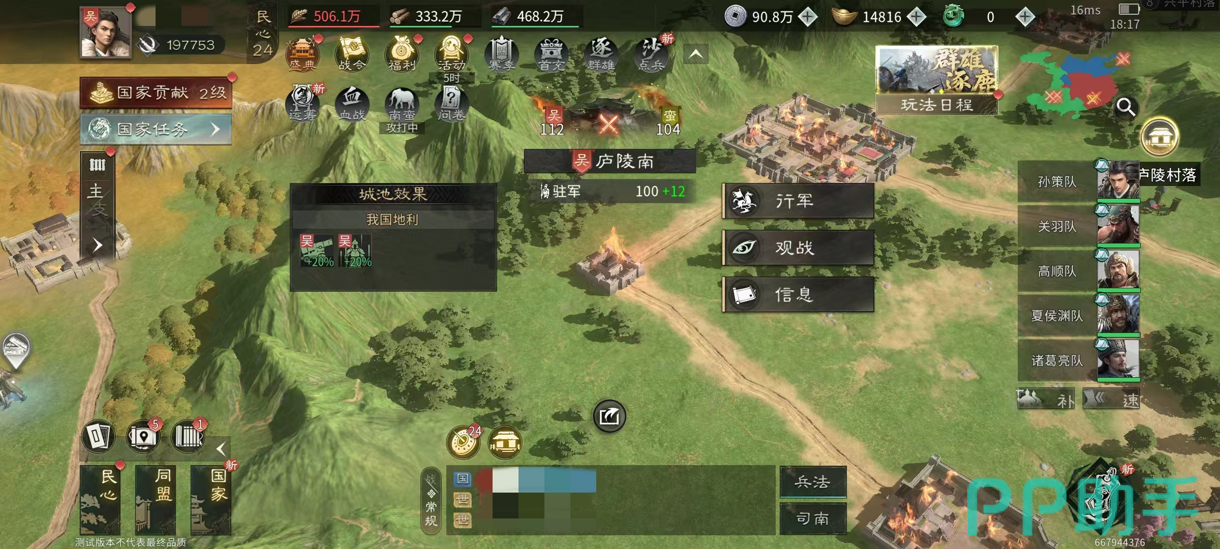 被入侵城池顶部均带有显著南蛮图腾标识。建议优先选择对本国势力具备增益效果的据点发起进攻,此类城池可同步提升我方输出效率并降低所受伤害。由于奖励结算以“成功击败的部队支数”为唯一依据,合理调度多支队伍轮番出击是提升收益的关键策略。活动对阵容强度无硬性限制,当前主流搭配均可胜任。通关后稳定获得元宝、征兵符、司南、银币及各类基础建设资源。其中银币产出尤为突出——英雄等级提升与技能升级均高度依赖银币供给,若长期缺席该活动,将难以满足中后期养成所需银币总量。