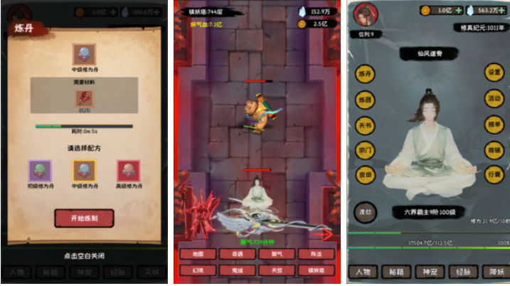 专为移动端优化的竖屏修真手游《云梦修真录》,采用复古青绿山水美学风格,界面布局适配单手操作习惯。资源获取路径明确,筑基、开光、金丹等关键境界突破材料均可通过日常任务、周常副本、宗门捐献等常规途径稳定积累。独创“心魔试炼”副本,依据玩家行为数据动态生成挑战内容;功法系统支持自由搭配组合,同一心法可衍生出攻击、防御、辅助三种流派变体。