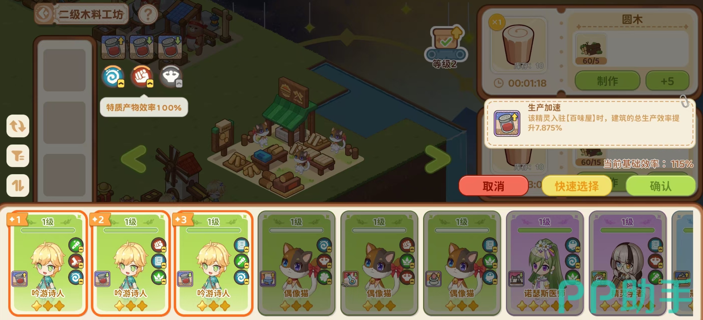 每只精灵在首次获得时,将自动绑定1个专属主动技能及3个随机特质。技能效果具有明确场景指向性,例如:某精灵在协助制作普通品质料理时,有固定概率将其升格为优质品质;另一精灵在钓鱼过程中,可使判定框尺寸扩大5%。特质则按红、蓝、绿三色维度划分,分别对应力量、敏捷、智慧三种属性倾向。当精灵特质颜色与当前工作建筑(如冶炼炉、渔场、烘焙坊)的属性标识相匹配时,将额外激活环境适配加成,进一步放大产出效率或成功率。