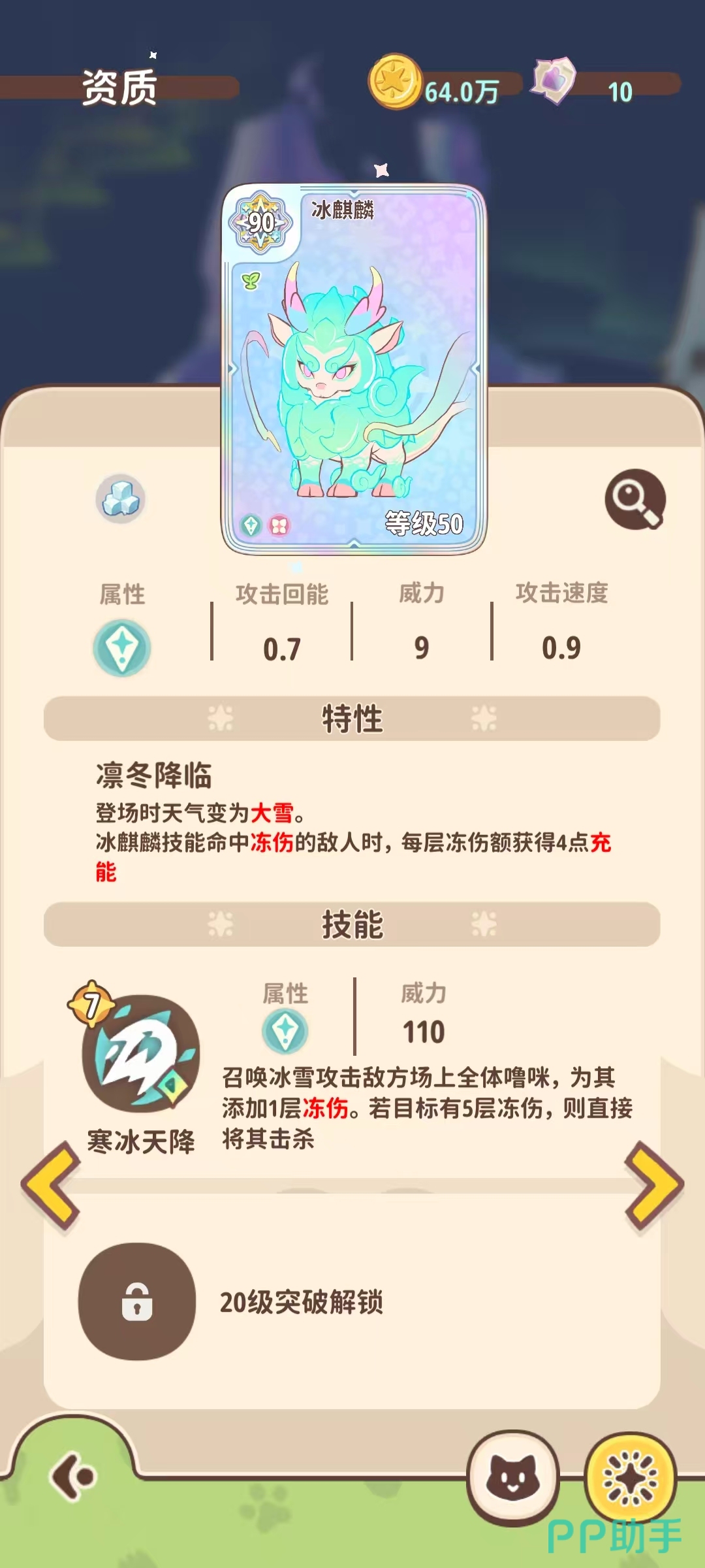当前版本实装的神兽共五只:青龙、白虎、朱雀、玄武与冰麒麟。每一只均对应传统四象体系或祥瑞图腾,并严格绑定专属属性与环境机制。获取路径高度受限——以冰麒麟为例,其为游戏主线最终章节守关噜咪,需通关全部前置剧情并完成多重挑战方可收服,培养周期长、资源投入大,属于典型的高门槛高回报型单位。