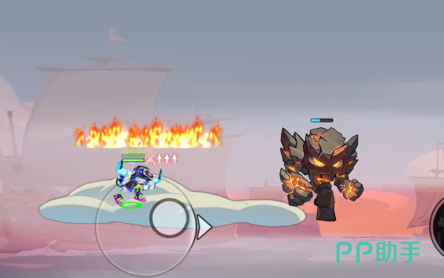 宝箱里一般开都能开出一些比较强力的道具,建议玩家在游戏开局之后率先登上云顶抢夺,和其他成员一起联合作战的时候,可以让战斗能力比较强的角色率先登上云顶,联合在的时候就能释放角色的战斗力,但要注意的是,一旦打开宝箱,里面还会走出一个石头人怪兽,可以在打开宝箱拾取武器之后向上跳跃,这时候就会在玩家当前位置生成火焰,等角色落地之后,火焰就会漂浮在角色的头顶,不用担心会受到持续性的伤害。
