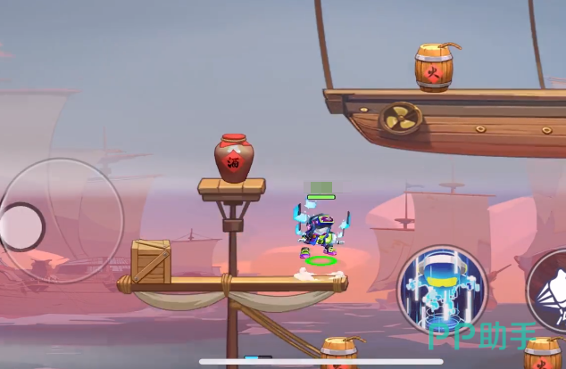 之所以很多玩家想上云顶,主要是因为在云顶上一般都会有宝箱,打开宝箱之后有机会得到强力的装备,想要登上云顶的话,首先要沿着场景里的建筑一直向上,在这个模式里一般都会设定很多艘大船,沿着大船一直向上攀登,看到一个可以悬浮在空中的大船,上面还有一个类似于热气球的球顶,这时候玩家要走到这个悬浮大船的最左侧,首先要登上最左侧的酒桶,然后在这个时候操控角色二段跳,就能顺利跳到云顶,来到云顶之后能看到这里会有一个紫色宝箱。