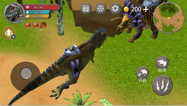 设定于白垩纪晚期孤岛生态,玩家以幼年三角龙为起点,逐步成长为顶级掠食者。游戏摒弃复杂UI,以纯粹“吞噬—成长—再吞噬”循环驱动进程:吞食植食恐龙积累体型值,击败肉食种获取稀有基因片段,不同组合将解锁角龙突刺、甲龙尾锤等专属技能。特别强化感官反馈——每次成功吞噬均伴随骨骼碎裂、血肉撕扯的拟真音效,配合屏幕震动与镜头特写,大幅提升沉浸感与爽快度。