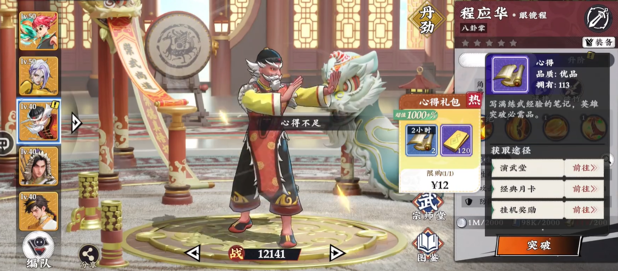玩家普遍称其为“眼镜程”,专属绝学为八卦掌——此技能不仅具备独立压制能力,更可与兰陎的招式形成战术联动,实现技能衔接与伤害叠加。实战中需依据敌方阵型动态调整程应华站位,以最大化技能覆盖范围与命中率。角色升阶需累计5星方可进阶,每次突破均同步强化生命、攻击、防御三项主属性。建议优先提升其等级与星级,在队伍中承担主力DPS职能,整体战力跃升节奏明显快于常规培养路径。