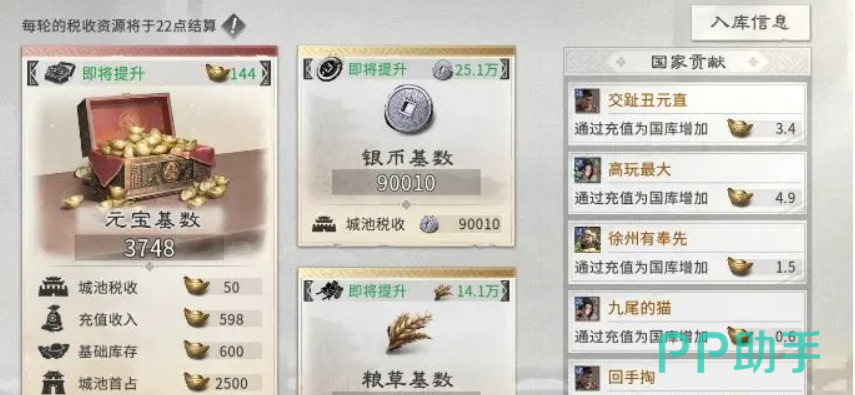 同盟生态同样提供元宝收益。参与国战、同盟工程建设等活动可提升个人贡献度,贡献度达标后即可领取包含元宝在内的分红奖励;首次加入同盟还可获得一次性元宝激励。