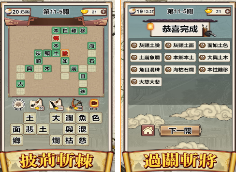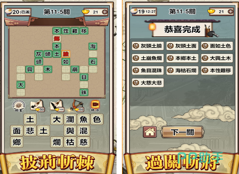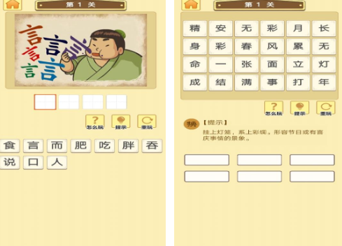 在玩法上既有趣也是既休闲又益智的,整体采用的是古朴的画面风格,搭配上轻松的音乐,你在玩的过程当中,也可以根据自己的需求选择不同的难度。不断的增加成语知识这方面的储备量,规则特别的简单明了,还支持使用道具。对于年龄小的孩子来说,也能通过游戏当中消除无聊,有超多的收获,在闯关的时候一定要有火眼金睛的能力。