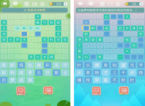 为了可以让更多的人学习与四字成语有关的文化,这一款以接龙玩法为主的,就是寓教于乐,老少皆宜的,在这里你能够看到各种各样的文字,通过显示填入相应的文字时,横竖都可以成为真实的成语,那么大家就可以顺利的完成闯关任务,更能够感受我国这种古老文化所具备的独特之处,愉悦身心。还有超多的玩法,包括看图猜成语以及成语消消乐等。