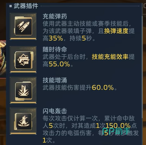振弦的芯片装配需围绕技能联动展开:必备插件包括“充能弹药”“随时待命”“技能增涌”及“闪电轰击”。死神猎手的核心机制依赖“死神之光”主动技能——能量蓄满后按F键释放,生成半径20米的范围爆炸伤害;其被动效果则在能量满但未释放时自动提升射速与换弹速度。因此,芯片应优先选择提升载弹量与延长换弹时间的类型,以支撑高频输出节奏。