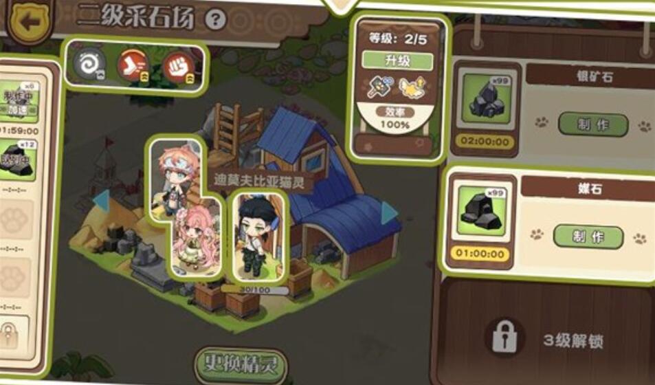 在建造与生产维度,精灵可被指派至各类功能建筑中执行自动化作业,如矿场冶炼、农场耕作、工坊锻造等。每座生产建筑最多容纳三位精灵协同驻守,驻守期间将持续产出对应资源,但会按时间消耗其精力值。精力归零后需通过休息、喂食料理或使用恢复道具使其重返工作状态。