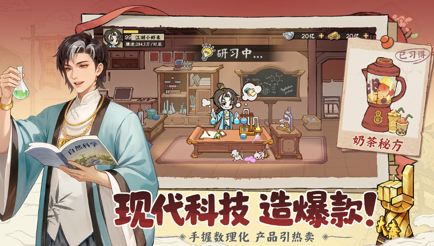 区别于传统客栈模拟玩法,《大店小二》引入了跨时代科研体系。玩家以现代穿越者身份进入古代世界,在满足前置条件后可启动技术研发项目。初期推荐优先投入奶茶与蛋糕配方研发,兼具低门槛与高回报特性;同步开通外卖服务模块,拓展营收渠道。随着资源积累,可逐步推进皮革加工、电力系统等进阶科技树分支,实现从单体店铺到产业链布局的跃迁。