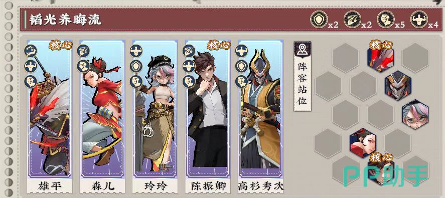 本流派推荐五人阵容:雄平、淼儿、玲玲、陈振卿、高山秀次。站位布局可直接参照图示配置,无需复杂调整。其核心机制由两大羁绊驱动:一是【5力量】羁绊,每5秒提升12%攻击力,最多可叠加12层;二是【4战勇】羁绊,每承受1%最大生命值伤害,即恢复20点能量。两项效果均为实时生效、高频触发,形成战力增长与技能释放的正向反馈闭环。