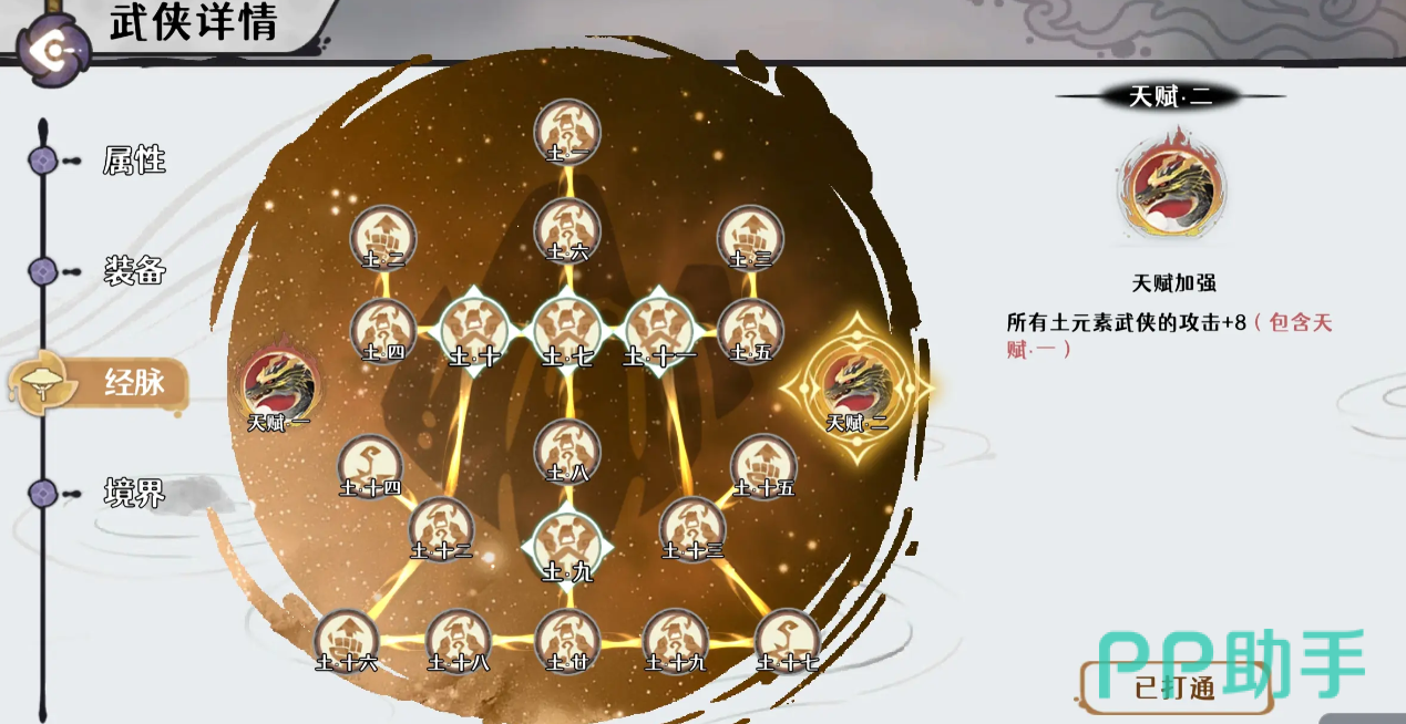 待全部经脉节点点亮后,即可解锁冥石坊地图。该区域为神兵进阶材料的核心产出地,所获资源可用于少年角色及武侠本体所持神兵的同步升级。当神兵等级统一提升至25级,即可激活突破系统,直接拓展角色等级上限,为后续高阶内容铺平道路。