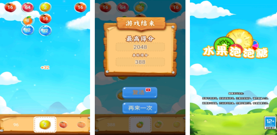 游戏构建了悬浮式合成系统:初始画面中,带数字标识的水果软糖已被泡泡托举至空中固定位置;玩家需从底部发射同类型水果泡泡,使其精准撞击对应数字的悬浮体。碰撞后二者合并,新软糖数字为原数值两倍。随着发射次数增加,屏幕空间逐步压缩,当界面填满即判定结束。最终得分取决于通关时场上最大数字值。