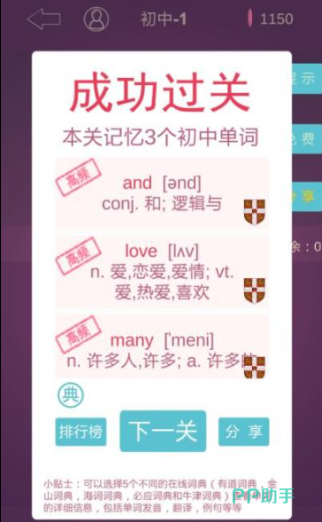 融合消除玩法与词汇构建逻辑,要求玩家在倒计时内拖动散落字母组成有效英文单词。每关提供差异化词根提示与限定字母池,难度随进度阶梯式上升。点击已成单词可即时调取释义、音标及英美双音真人发音音频。支持双人实时对战模式,学生可与同班同学发起词汇挑战赛,通过胜负结果反向检验日常积累成效。