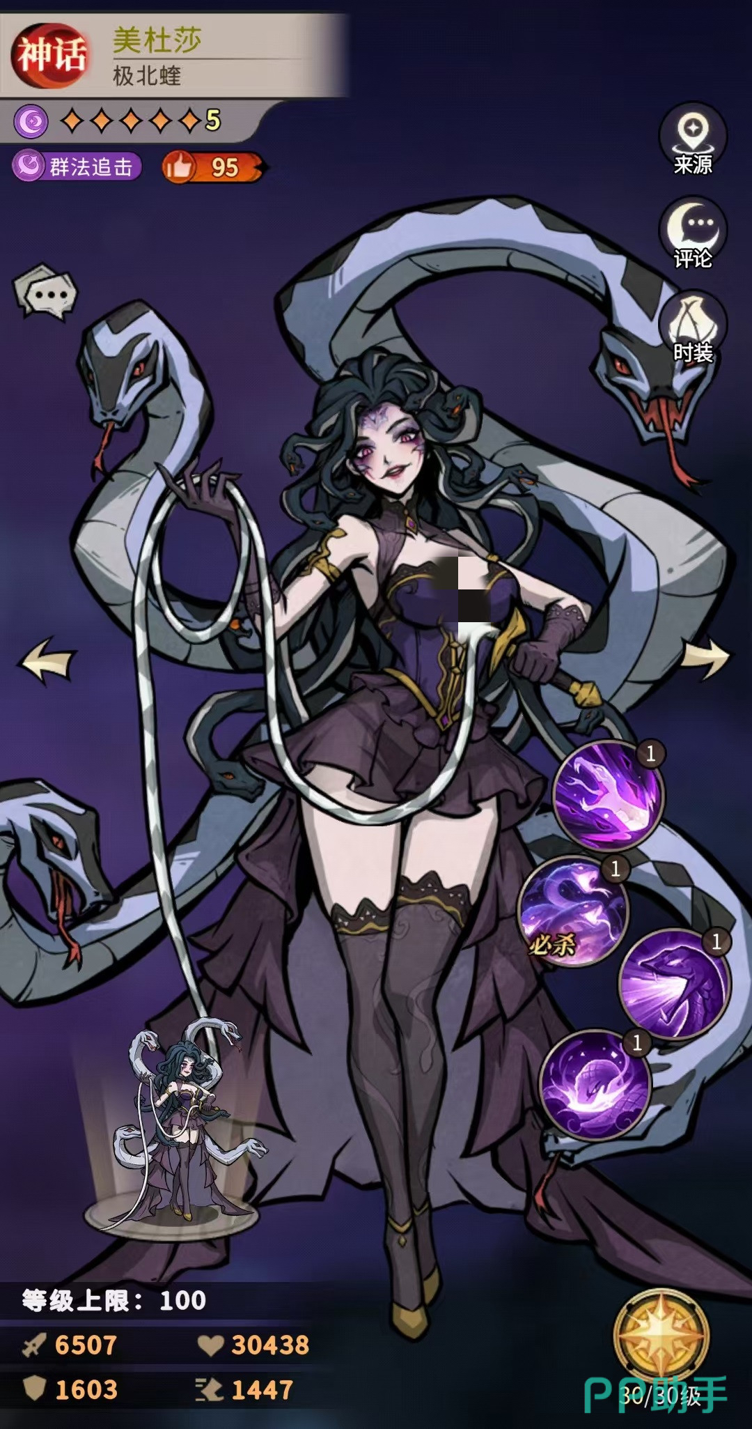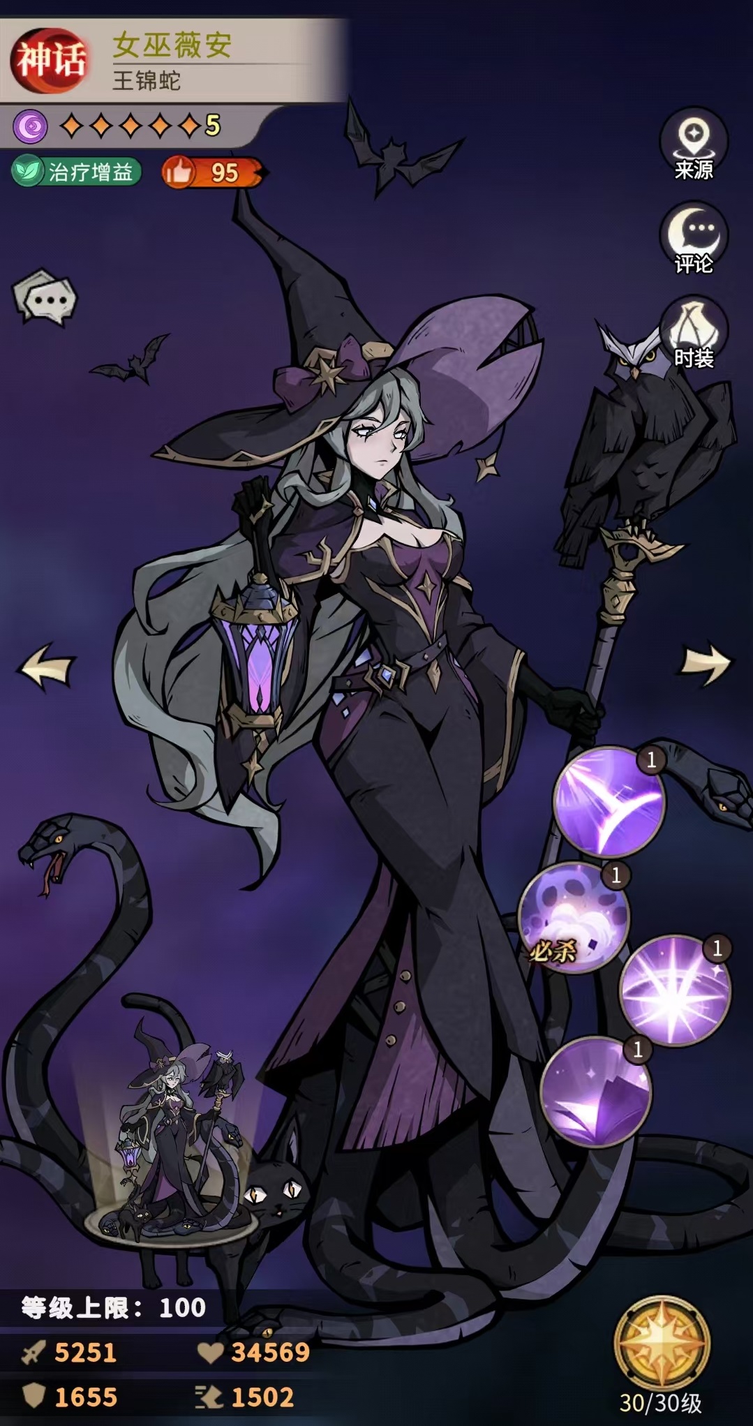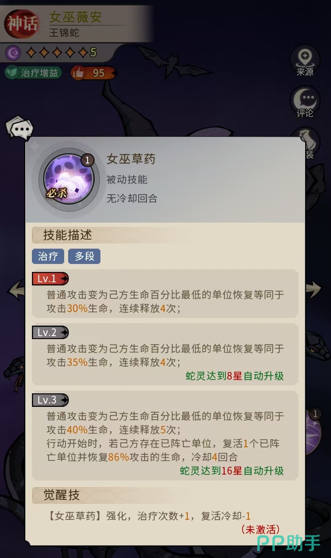 在《幻灵召唤师》中,女巫薇安作为高人气暗系神话品质蛇灵,凭借其独特的辅助机制与战术适配性,成为当前版本中极具战略价值的治疗增益型英雄。她并非传统意义上的纯奶妈,而是融合了中毒施加、伤害转化治疗、群体复活、属性强化与爆发联动支持等多重功能的复合型辅助角色。