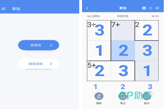 在数独规则基础上叠加四则运算约束:棋盘被划分为若干“笼子”,每个笼子标注目标数值与运算符号。玩家需同时满足“行列宫不重复”与“笼内运算结果匹配”双重条件。全部谜题经人工校验,逻辑严密且解法唯一;舒缓音效辅助专注沉浸。