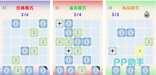以数字合成为核心机制,玩家通过点击或滑动操作,使三个及以上相同数字碰撞融合,逐步生成更高数值。界面简洁,上手零门槛;但高阶目标需预判数字落点与路径规划。内置经典闯关、限时冲刺与无尽挑战三种模式,超百关卡布局全部独立设计,避免重复体验。