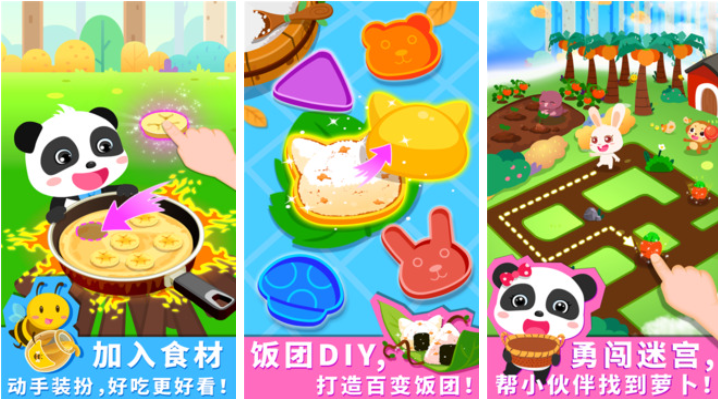 融合厨房模拟与轻度探索玩法,以熊猫为主角展开森林美食之旅。玩家可完成食材采集、清洗、切配、烹饪及摆盘全流程,同时穿插迷宫寻路、食材分类、颜色匹配等小游戏。所有操作采用拖拽+点击方式,步骤分解细致,每步均有语音提示与正向反馈。画面采用柔和手绘风,音效清脆温暖,有效降低幼儿使用焦虑感,提升持续专注力。