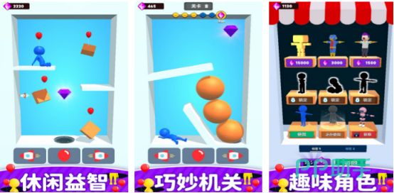 以火柴人为主角的节奏型闯关游戏,核心操作为点击屏幕完成发射动作,操控角色穿越动态障碍群并准确落入目标洞口。过程中可装配气球、火箭等辅助装置,调节飞行姿态与下落轨迹。关卡设计融合海洋、太空等主题场景,强调时机把控与微操精度,挑战性随进度阶梯式提升。