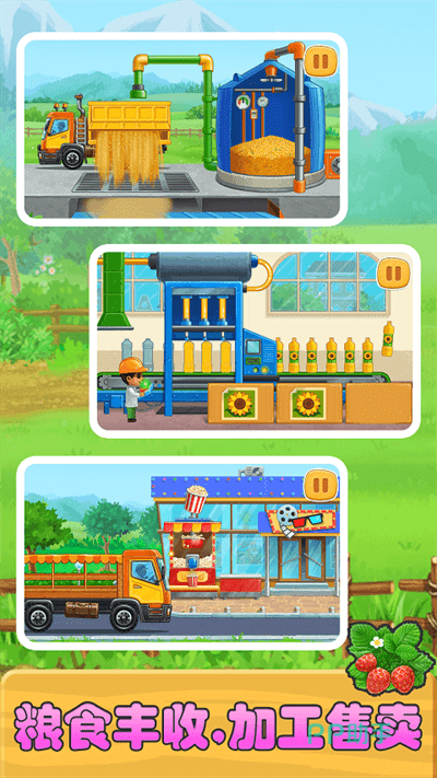 本作以沉浸式农场模拟为核心,融合种植、养殖、收获、加工等完整农业流程。儿童可自主规划田地分区、选择作物品种、照料家禽牲畜,并观察从播种到成熟的生长周期。内置农用机械模型(如拖拉机、灌溉车)及常见农作物(玉米、胡萝卜、苹果树)与动物(奶牛、小鸡、绵羊),同步传递食物来源与营养常识。