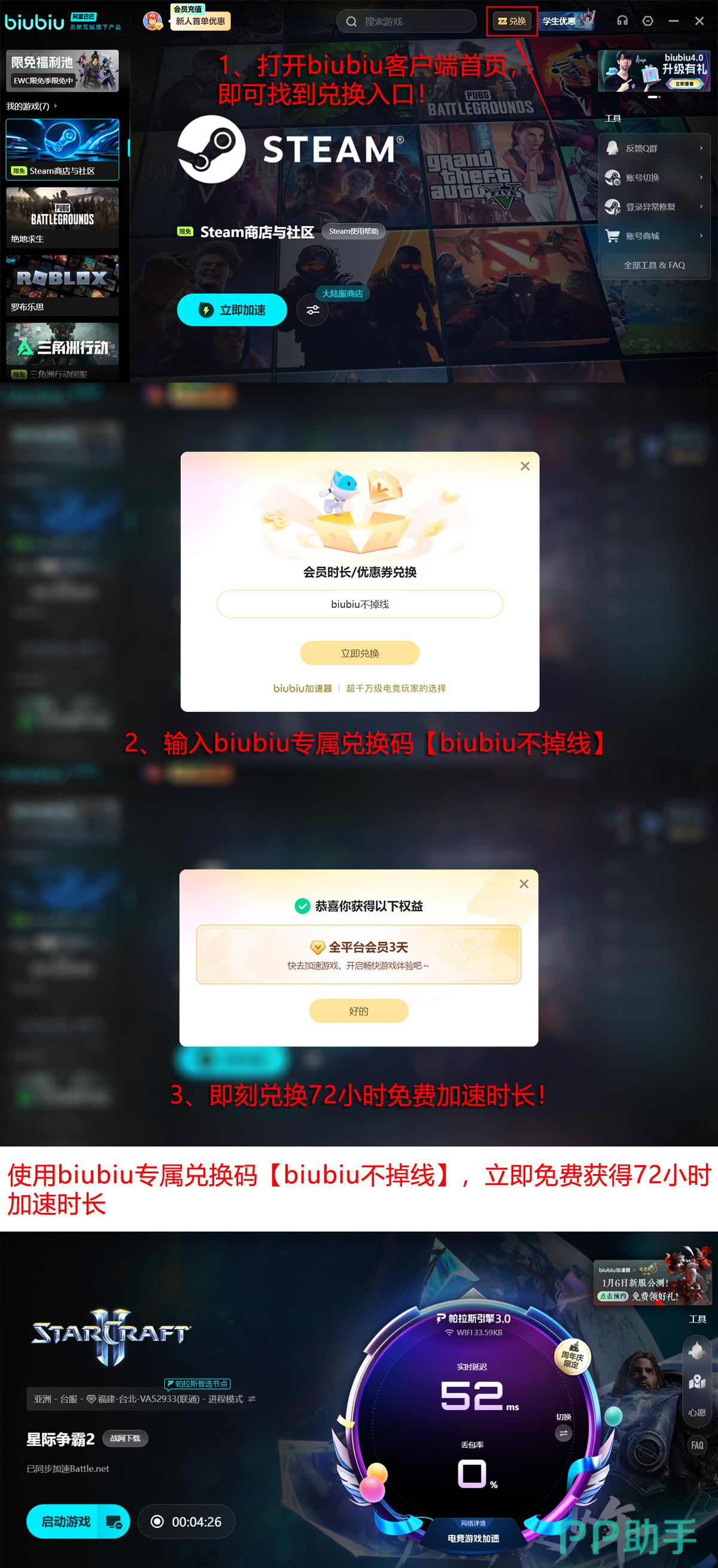 新用户注册即可领取专属福利:包含24小时免费加速时长;叠加“biubiu不掉线”权益后,还可额外获得72小时加速服务,总计达96小时。同步开启的冬季促销活动时间为12月18日至1月18日,期间限免加速库覆盖范围进一步扩展,Steam平台用户亦可享受同等限免加速服务。