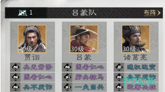 该阵容以诸葛亮“料敌机先”天赋为战术触发轴心——敌方武将激活天赋的瞬时,即可同步施加伤害与控制效果,打断其技能释放节奏。在此基础上,贾诩承担连环输出职能:每当友军成功施加控制,其“乱谋迭出”天赋即被激活,追加高额伤害并有概率附加混乱状态,实现控—伤—再控的闭环链式反应。而吕蒙则定位为前排战略枢纽,“白衣渡江”天赋可强制吸引敌方集火,为全队提供持续性的伤害减免,显著提升整体容错率与续航能力。