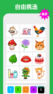 采用经典像素填色规则,内置建筑、动画角色等多元主题图库,并开放本地照片导入功能,可自动转换为适配填色逻辑的像素线稿。操作界面配备高亮提示与自由缩放工具,便于精准识别微小区域。成品呈现典型像素颗粒质感,零绘画基础亦可产出协调美观作品,覆盖全年龄段用户。