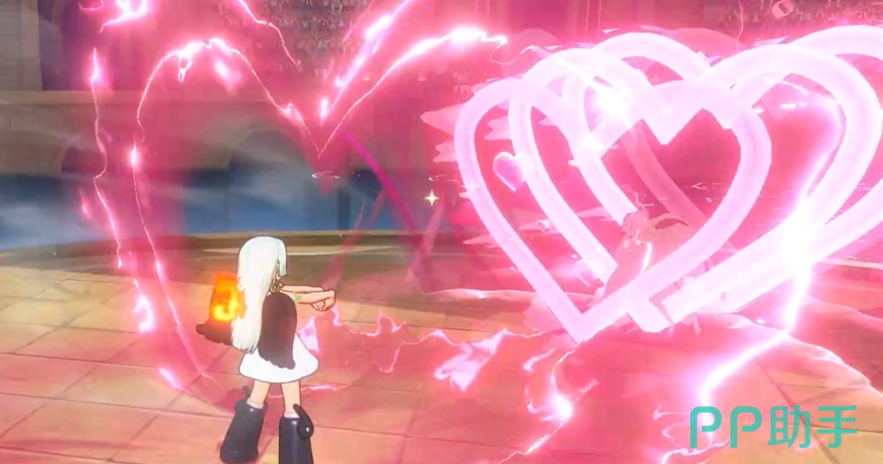 终结技“我最可爱”具备穿透特性:正面命中可无视部分无敌状态并强制石化;究极奥义为双掌结成爱心发射强效光线,实现全屏瞬发石化;激斗技“我生气了”爆发环形气浪,对周围单位造成伤害并恢复自身能量;被动技“火焰”则赋予特殊生存机制——当角色生命值归零且存在火焰环境时,自动触发一次原地复活。