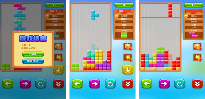 乐游方块消除是一个比较益智的消除手游,挑战开启之后会下落大量的彩色方块,玩家要把这些方块放在场景最合理的位置,每次放置还可以通过点按按键旋转方向,需要保证在放置大量除案之后,让整行都铺满场景,这样整一行都会被消除,每关都会设置一个警戒线,只要保证图案在警戒线以下,就可以不断挑战,积累分数。