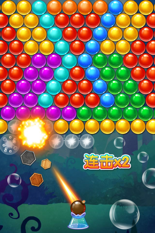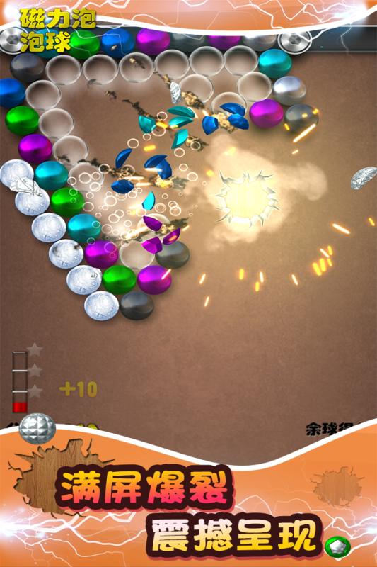 创新融合物理引擎与磁吸机制:泡泡之间存在引力/斥力反馈,击打后产生连锁位移与反弹轨迹,大幅增强操作真实感。特效表现强调粒子光效与动态阴影,关键消除时刻伴有镜头缩放与慢动作特写。道具体系包含磁力增强器、范围吸附器、颜色转换器等十余种功能型物品,支持自由组合策略使用。